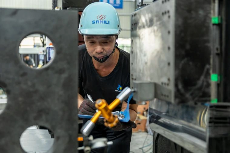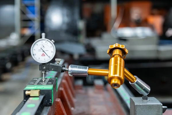 3. Efectuați inspecția întregii mașini a perpendicularității dintre șina de ghidare a axei Z și masa de lucru, asigurând precizia de 0,01 mm.