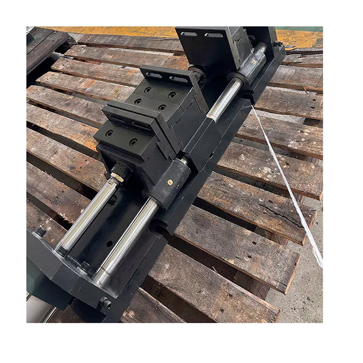 Adoptăm corp din fontă nodulară + proces de șlefuire de precizie, precizia plană a maxilarului atinge standardul de precizie, astfel încât să puteți menține în continuare deplasarea stabilă la viteză mare de tăiere.