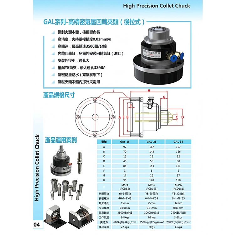 Gal-25 este un mandr de pneumatic rotativ de mare viteză. Aparține unui fel de much pneumatic, adesea utilizat în prelucrarea CNC, mașina de măcinare de precizie și alte echipamente de prelucrare a preciziei, cu o precizie ridicată